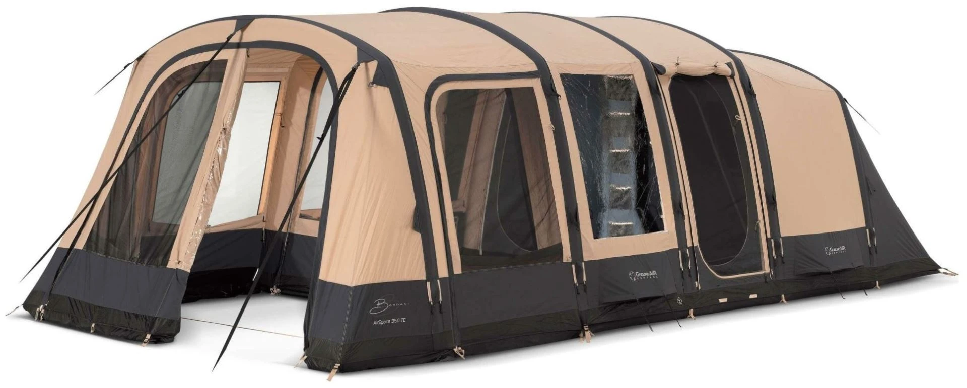 De Bardani Airspace 350 TC is een luxe rechtwandige oppomptent met royale afsluitbare luifel en extra veel binnenruimte. De buitentent is van ademend technisch katoen (210 gr/m2). Het frame bestaat uit luchtbuizen, met een doorsnee van 14 cm.