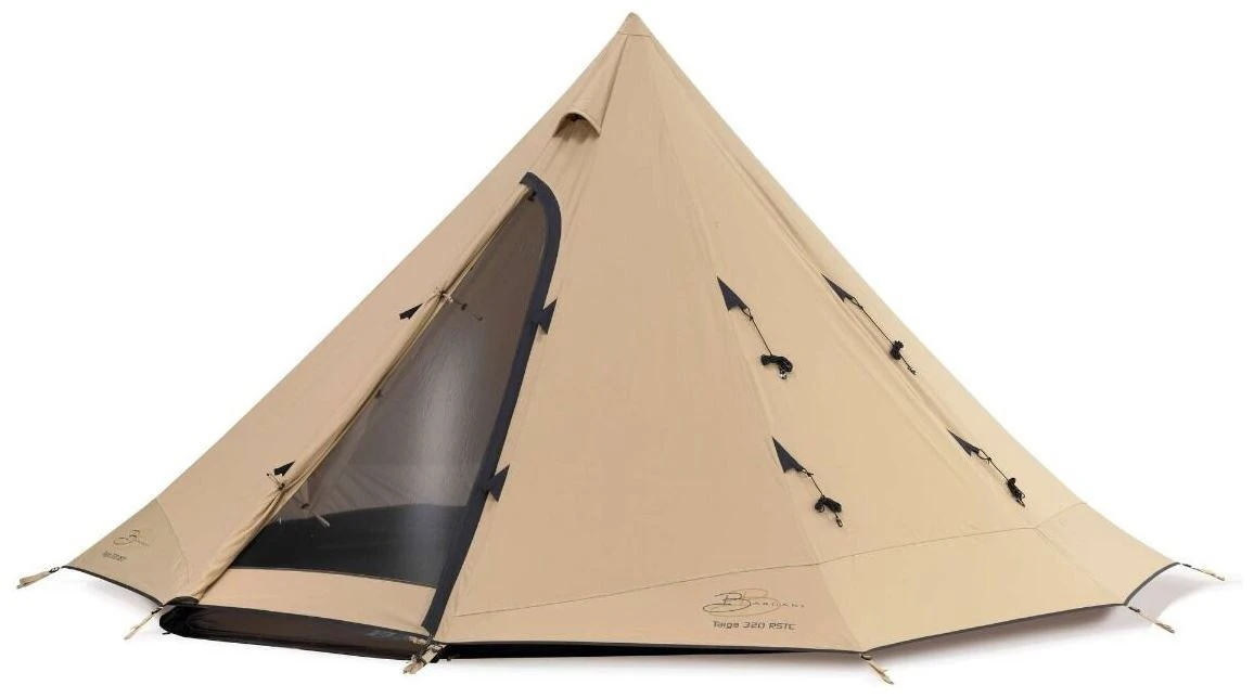 Das Bardani Taiga 320 RSTC ist ein sportliches 4-Personen-Tipi-Zelt mit Kopffreiheit und einer Netztür.