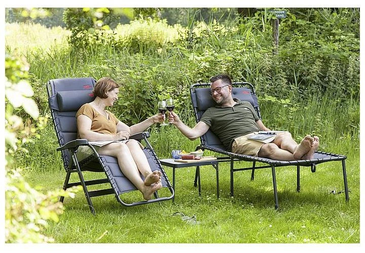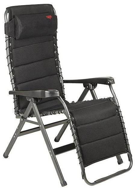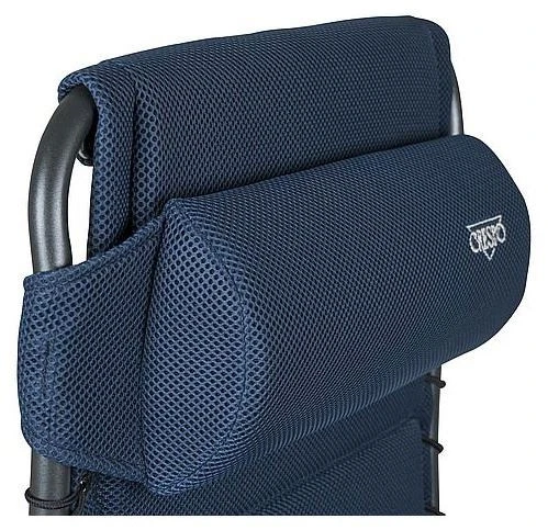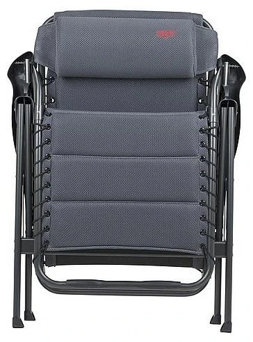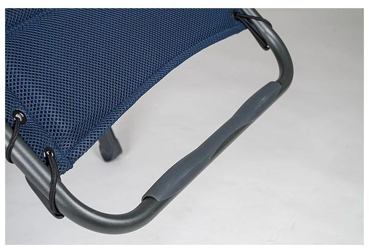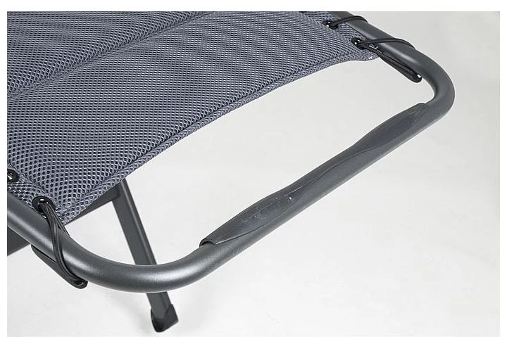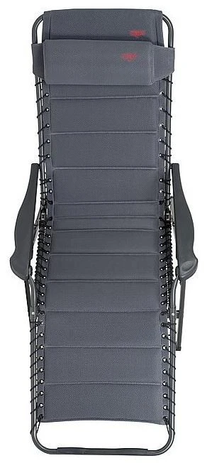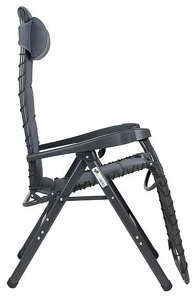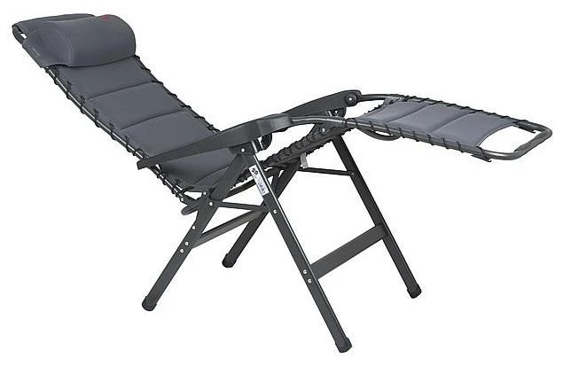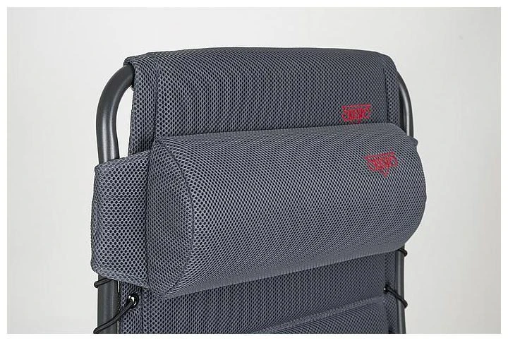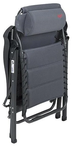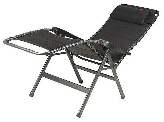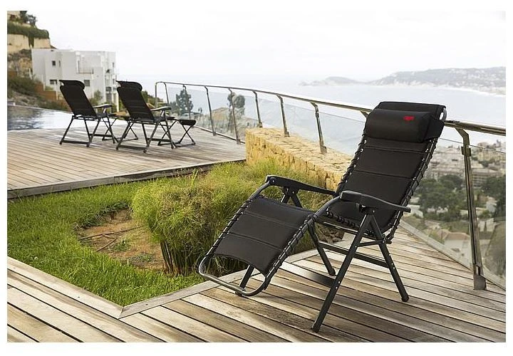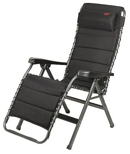 Ein sehr luxuriöser und bequemer Relaxstuhl mit Kopfkissen. Dieser Stuhl bietet maximalen Komfort, da er stufenlos verstellbar und mit einem durch einen Gummizug befestigten gepolsterten 3D-Stoff versehen ist. Die komfortable Polsterung des Stoffs ist besonders luftdurchlässig. Die Verarbeitung verleiht ihm eine stilvolle Ausstrahlung. Sowohl die Rückenlehne als auch die Armlehnen sind ergonomisch geformt und der Stuhl ist mit einem Fixiersystem versehen, mit dem er in jeder gewünschten Position arretiert werden kann. Der Stuhl ist mit einem eloxierten H-Rahmen ausgestattet, der extra Stabilität und Sicherheit gewährleistet. Der Stuhl ist extra breit, extra tief und hat einen besonders hohen Sitz (50 cm). Der Stuhl ist im eingeklappten Zustand sehr kompakt und dadurch einfach zu transportieren in der mitgelieferten Aufbewahrungstasche.