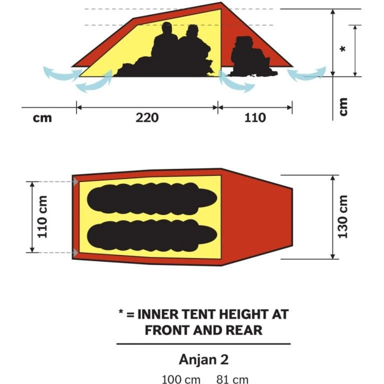 Anjan und Anjan GT sind sehr leichte Tunnelzelte für Mehrtagestouren unter schneefreien Bedingungen. Die einseitig zugänglichen Öffnungen des Gestängekanals garantieren einen schnellen, unkomplizierten Aufbau. Das Außenzelt reicht bis zum Boden, wobei die bogenförmigen Aussparungen der stetigen Belüftung dienen. Zudem tragen eine Innenzelttür aus Mesh-Material und ein dreieckig geschnittener Netzlüfter im hinteren Bereich zur Frischluftversorgung bei. Eine willkommene Option an heißen Tagen: Zur maximalen Belüftung lässt sich die Vorder- und Rückseite des Außenzelts – sowie bei den GT-Modellen die gesamte Apside – einrollen.
