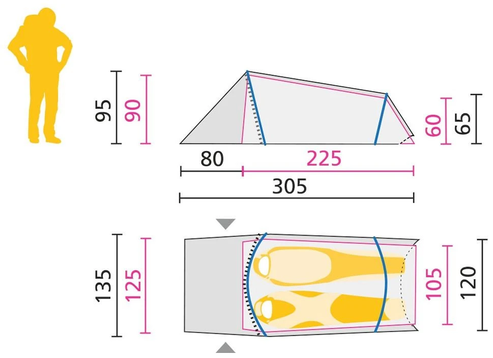 Wenn nachts der Wind über die Hügel fegt, ist das für die klassische Tunnelkonstruktion kein Problem. Sie steht mit zwei Gestängebögen und durchdachter Abspannung sehr stabil. In heißen Sommernächten baust du das Innenzelt aus Netzmaterial einfach solo auf. Dann hast du freien Blick auf den Sternenhimmel.