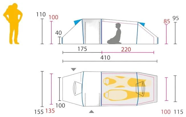| Außenzelt | 20d silikonisierte ripstop Nylon; 1500 mm |