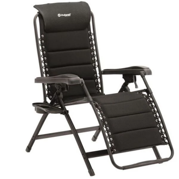 Der Outwell Acadia besitzt eine schnell trocknende Polsterung sowie ein Textiline-Netzmaterial in einem ansprechenden Schwarzton. Der Stuhl ist unter dem Bezug mit einem wasserabweisenden Material versehen, damit sich die Schaumstoffpolster nicht mit Wasser vollsaugen können, falls der Stuhl einmal im Regen vergessen werden sollte. Die Kopfstütze lässt sich einstellen und abnehmen.