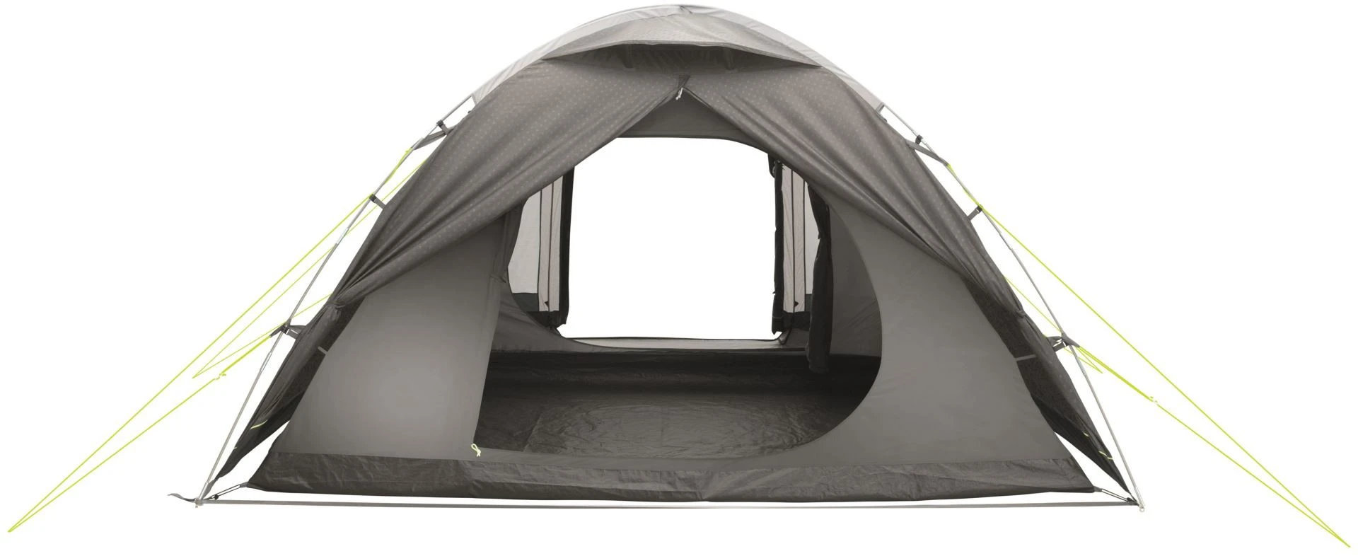 Das Haze 5 für fünf Personen ist ein leichtes Kuppelzelt mit einem geräumigen Wohn- und Schlafbereich sowie einem erweiterten Vorraum über dem breiten Vordereingang. Das im Handumdrehen aufgebaute Modell mit stabilem Gestell bietet Familien und Gruppen einen behaglichen Unterschlupf, auf den sie sich verlassen können.