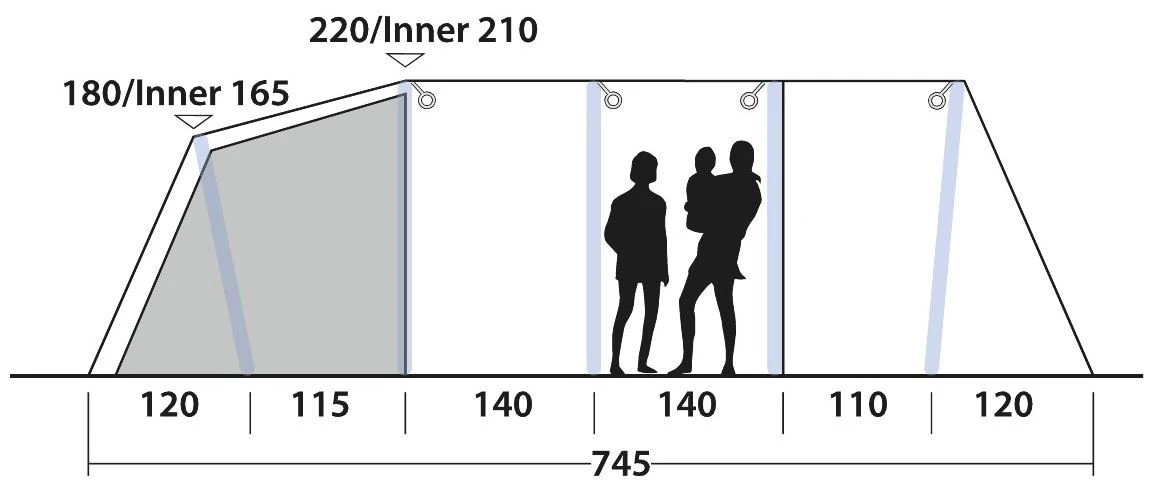 Sie werden die enorme Menge an Platz für das flexible Leben auf dem Campingplatz in dem funktionsreichen Queensdale 8PA aufblasbaren Zelt lieben. Es bietet Platz für bis zu acht Personen in bis zu vier Schlafzimmern und eignet sich perfekt zum Teilen mit Familie und Freunden bei langen Campingferien. Ein Innenzelt im Wohnbereich bietet die Möglichkeit, ein Gästezimmer zu haben oder es zur praktischen Aufbewahrung zu nutzen. Falls nicht benötigt, kann es für zusätzlichen Wohnraum leicht entfernt werden. Sie können die vielen Türen überall wegrollen, um frische Luft und Natur den Innenraum für ein echtes Outdoor-Erlebnis füllen zu lassen. Mit exzellenter Vielseitigkeit und Belüftung werden Sie viele Jahre gemeinsam ein glückliches Urlaubsdomizil teilen.