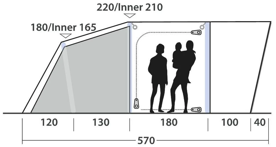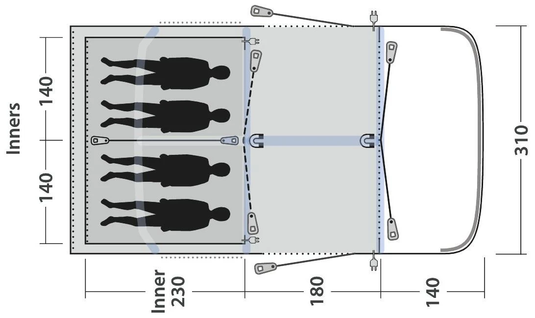 Met voldoende stahoogte geniet u van het ruime gevoel van een volledig uitgeruste tent die u het comfort van thuis biedt. Er is ruimte voor vier personen, ideaal voor kleinere gezinnen of koppels die op zoek zijn naar extra ruimte, en door het uitstekende ontwerp maakt u contact met de natuur en kunt u samen ontspannen in stijl. Door de voordeur weg te rollen creëert u een panorama-ervaring waarmee u buiten naar binnen brengt.