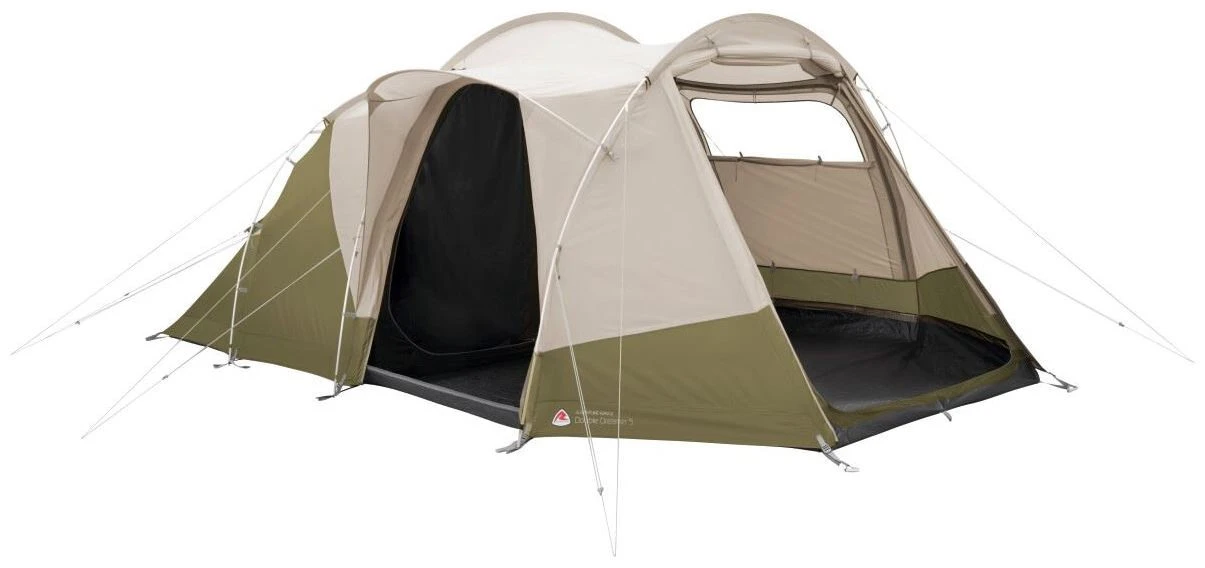 Das Double Dreamer 5 bietet Platz für fünf Personen und bietet abenteuerlustigen Familien das perfekte größere Basiszelt mit Stehhöhe und Allwetterleistung. Die Ausstattung umfasst eine doppelte Rückseite und niedrige Lüftungsschlitze, um den Luftstrom zu steuern, verstärkt durch Netzeinsätze hinter Außentüren für eine insektenfreie Belüftung. Das Mesh-Fenster ist mit einem wasserdichten Vorhang mit oberem PVC-Panel versehen, um Privatsphäre, Belüftung und Lichteinfall auszugleichen. Eine regensichere Seitentür bietet wasserfreien Zugang.