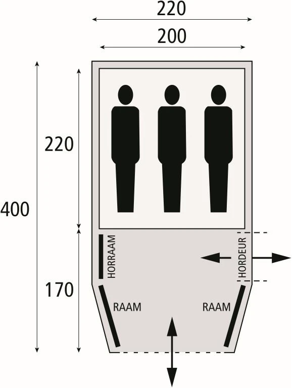 | Außenzelt | 100% Polyester honeycomb, 4000 mm |