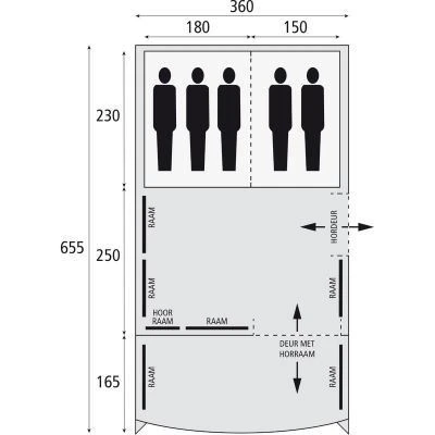 | Außenzelt | 100% Polyester honeycomb, 4000 mm |
