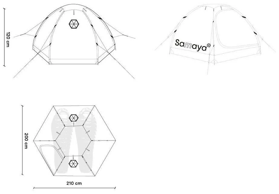 Der Samaya2.5 lässt sich dank seiner selbsttragenden Struktur sehr schnell auf- und abbauen. Die Kuppelform maximiert den Wohnraum des Zeltes, ohne seine Kompaktheit im zusammengeklappten Zustand zu beeinträchtigen. Die hohen vertikalen Wände und die Deckenhöhe sorgen für Komfort. In den drei großen Taschen können Sie Ihre Ausrüstung segmentieren. Die sechseckige Form sorgt auch dafür, dass es keine Schwäche im Wind gibt.