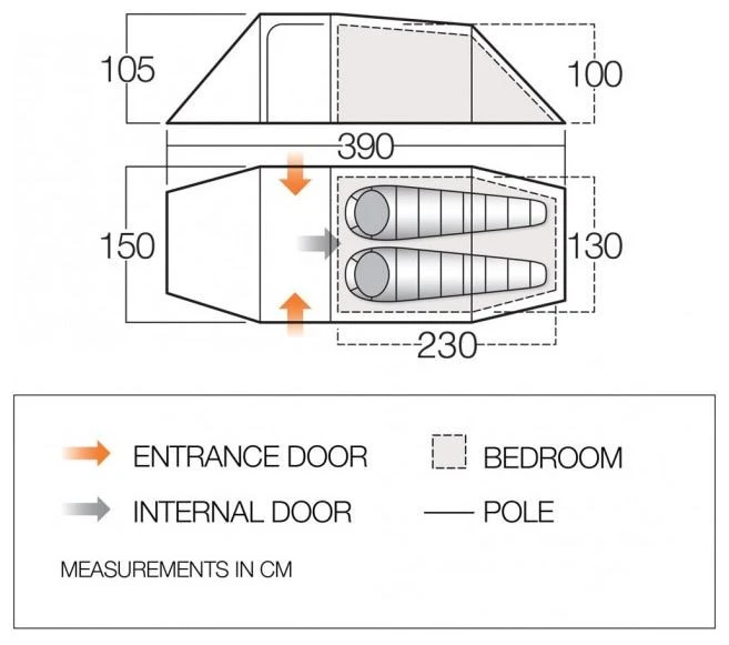 - Binnen- en buitentent in één keer op te zetten. Simpel en snel.